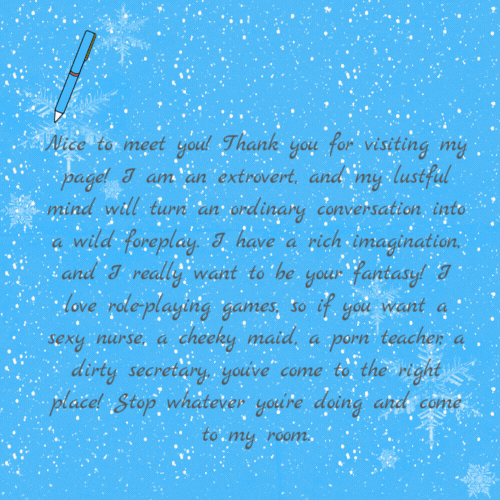 Prazer em conhecê-lo(a)! Obrigado(a) por visitar minha página! Sou extrovertido(a) e minha mente lasciva transformará uma conversa comum em uma preliminar selvagem. Tenho uma imaginação fértil e quero muito ser a sua fantasia! Adoro jogos de interpretação de papéis, então se você quer uma enfermeira sexy, uma empregada atrevida, uma professora de filmes adultos, uma secretária safada, você veio ao lugar certo! Pare o que estiver fazendo e venha para o meu quarto.